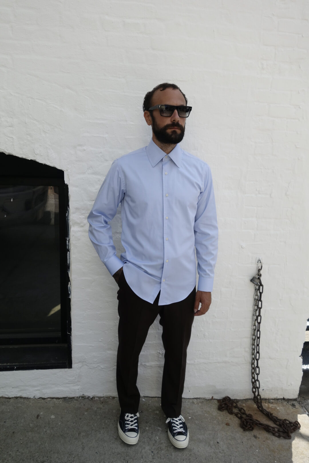 Light blue Pinpoint Oxford Spread collar shirt